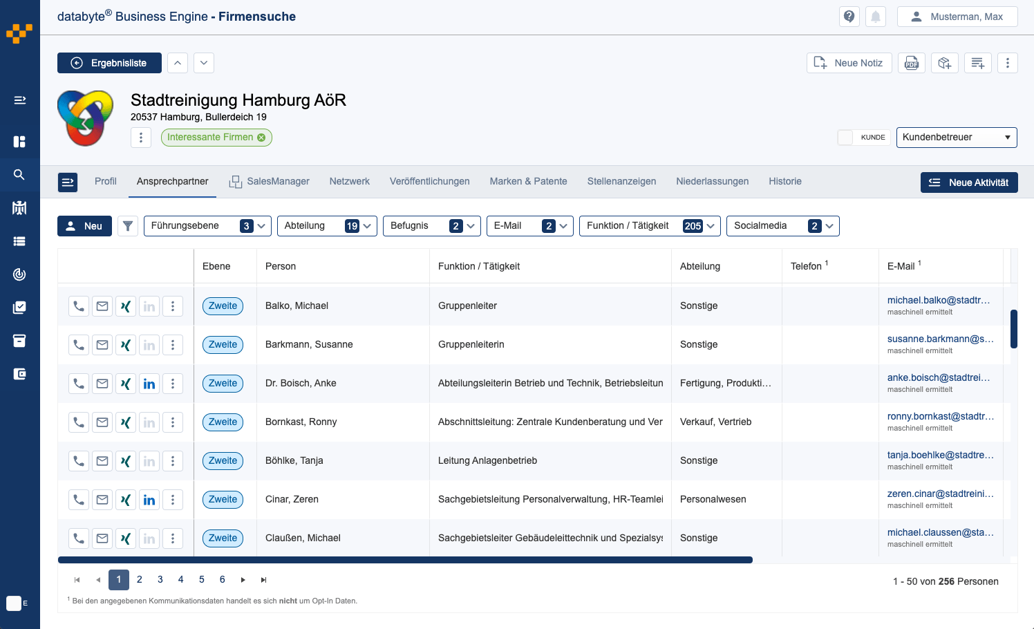 Die Pflege Ihrer Kundendaten wird Sie keine Zeit und Nerven mehr kosten: Unsere automatische Datenpflege hält die Datenbank mit allen Business-Informationen immer sauber und aktuell.