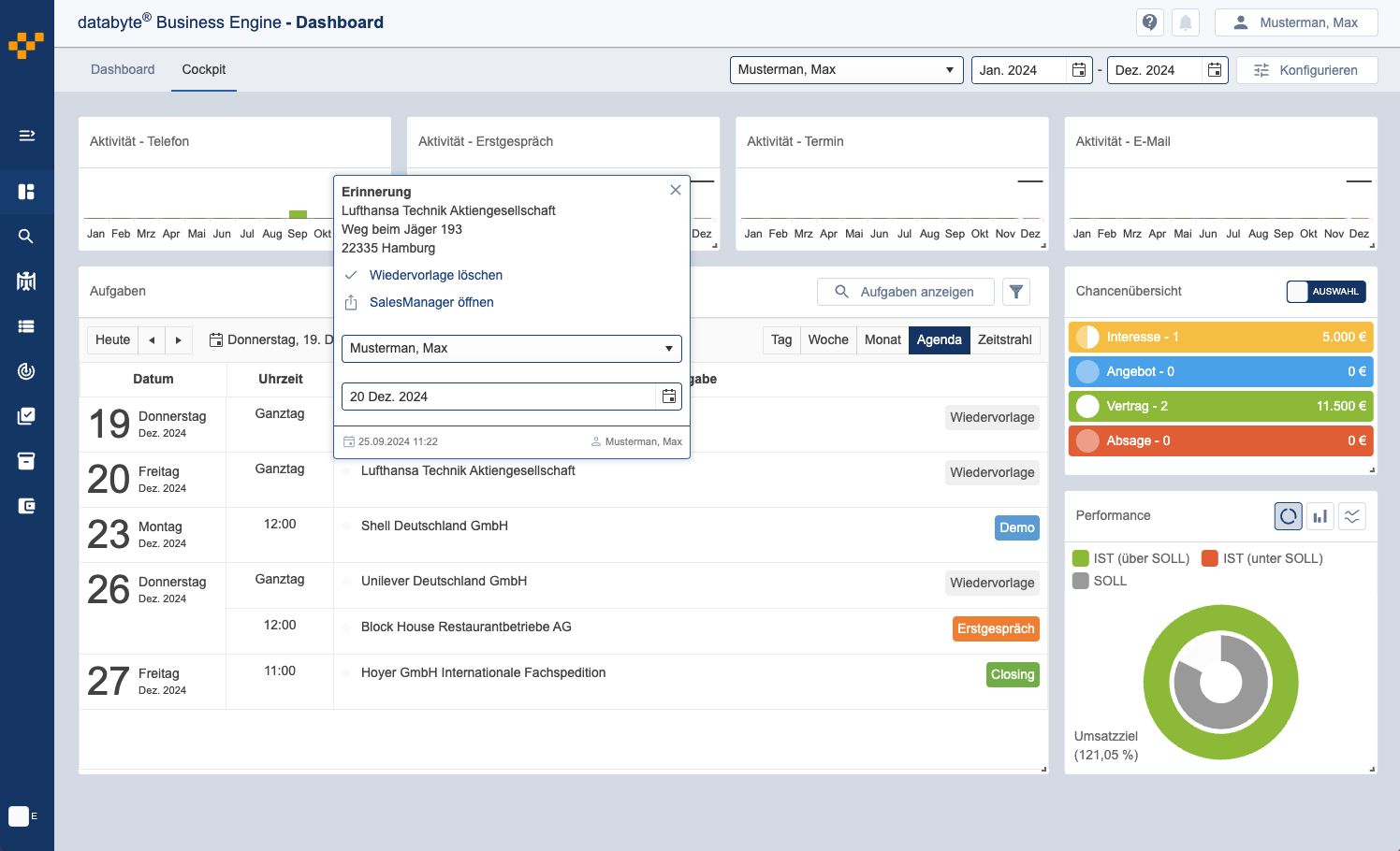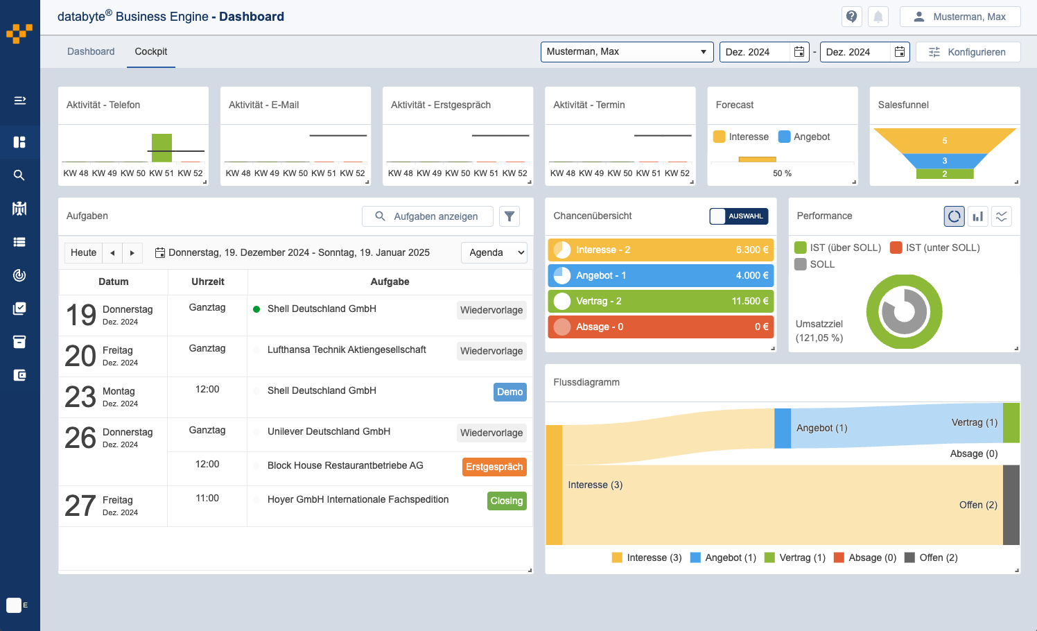 Mit dem individuell konfigurierbaren Cockpit haben Sie alle Opportunities, Deals oder auch Absagen immer im Blick.